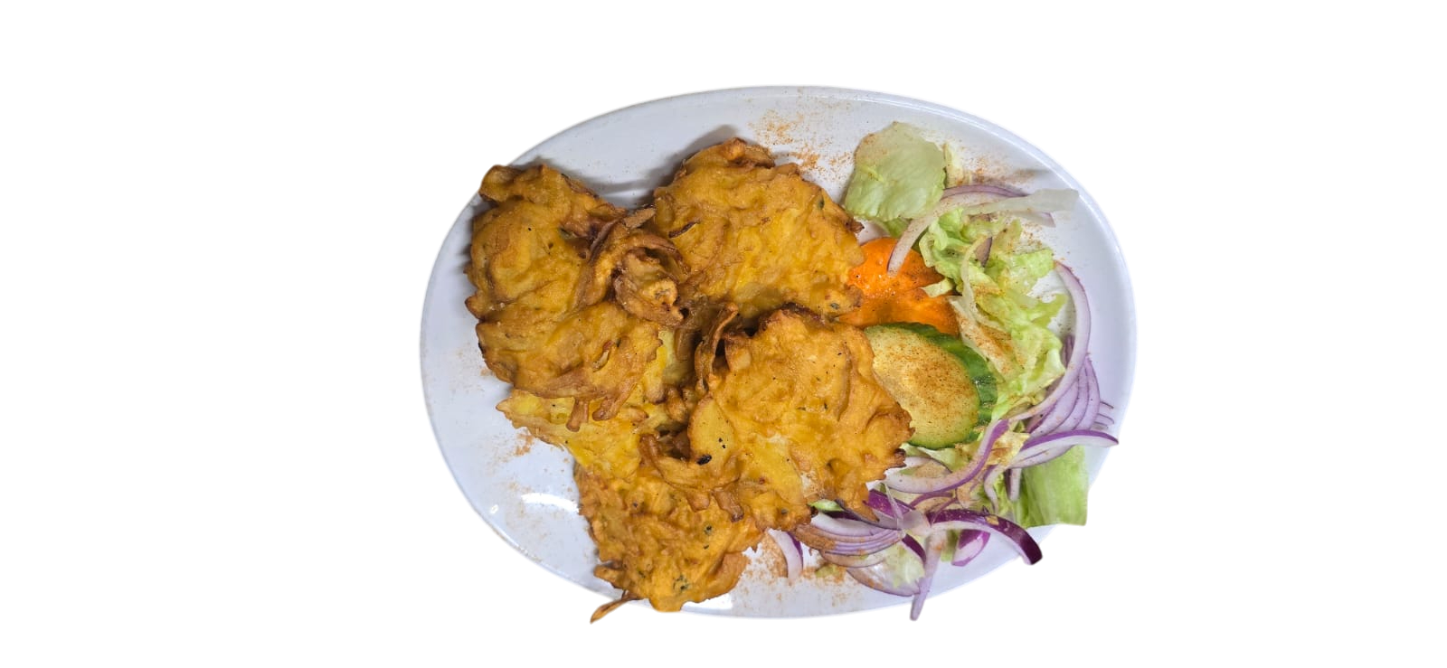 Sauted onions coated in chickpea batter fried golden brown